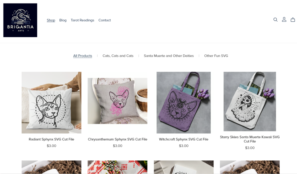Brigantia Arts is on Etsy! I sell all kinds of physical and digital products there that I do not sell on payhip. You will find items with my SVG already on them to buy if you are not interested in the crafting side. Go take a peek!