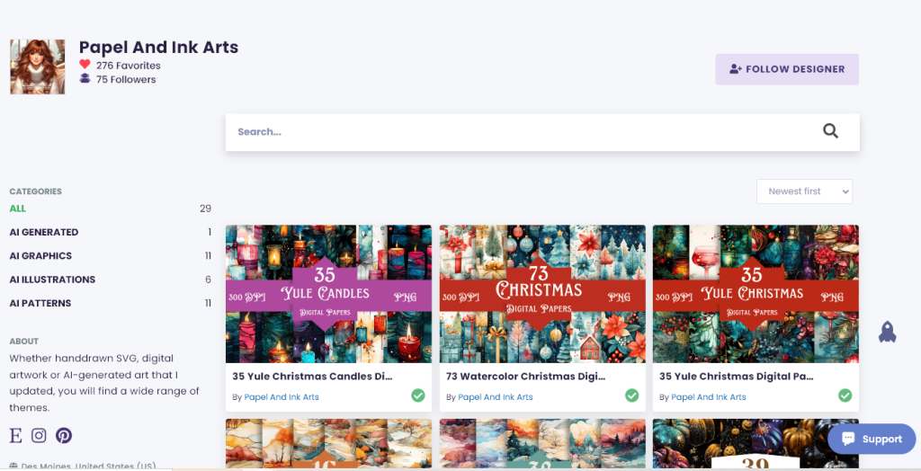 Papel and Ink is also the name of my store on Creative Fabrica for now, which could change in the future. But I do list my digital papers and possibly embroidery files here!